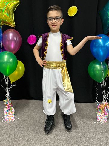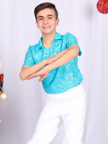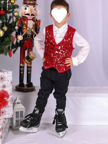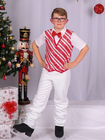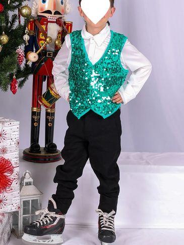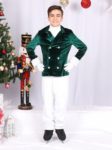 Col roulé blanc, pantalon blanc, gants blanc et veston vert en velour